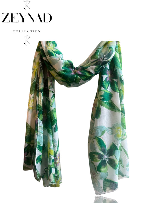 Light Green Floral Modal Hijab