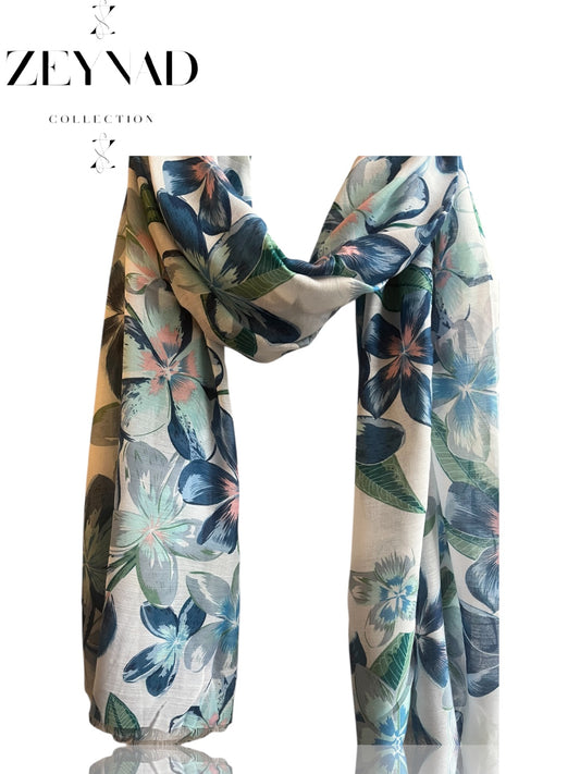 Light Blue Floral Modal Hijab