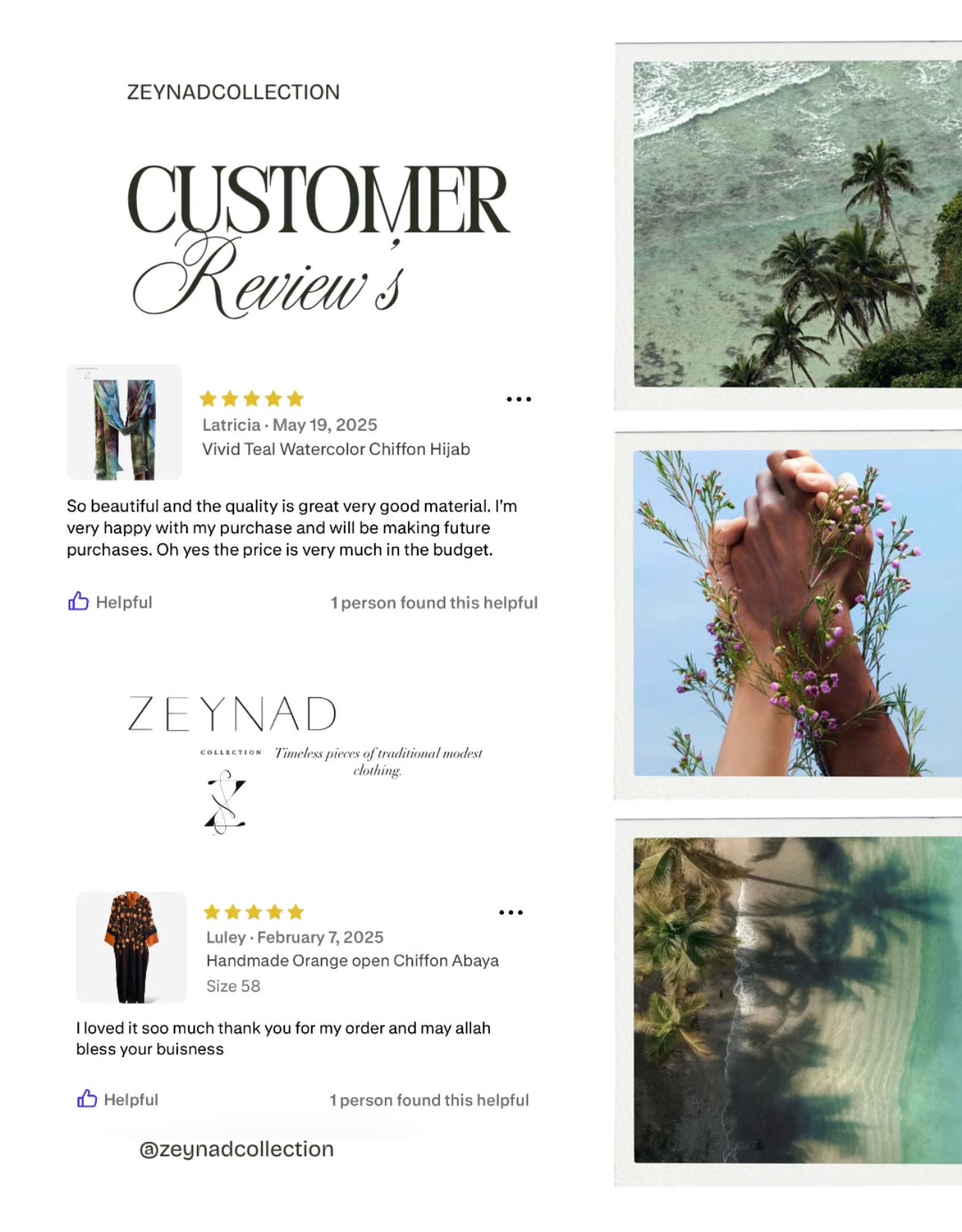 Welcome to zeynadcollection. Where you can experience the elegance of modesty with all of our pieces. Every design combines timeless tradition, ensuring you feel both stylish and comfortable.
