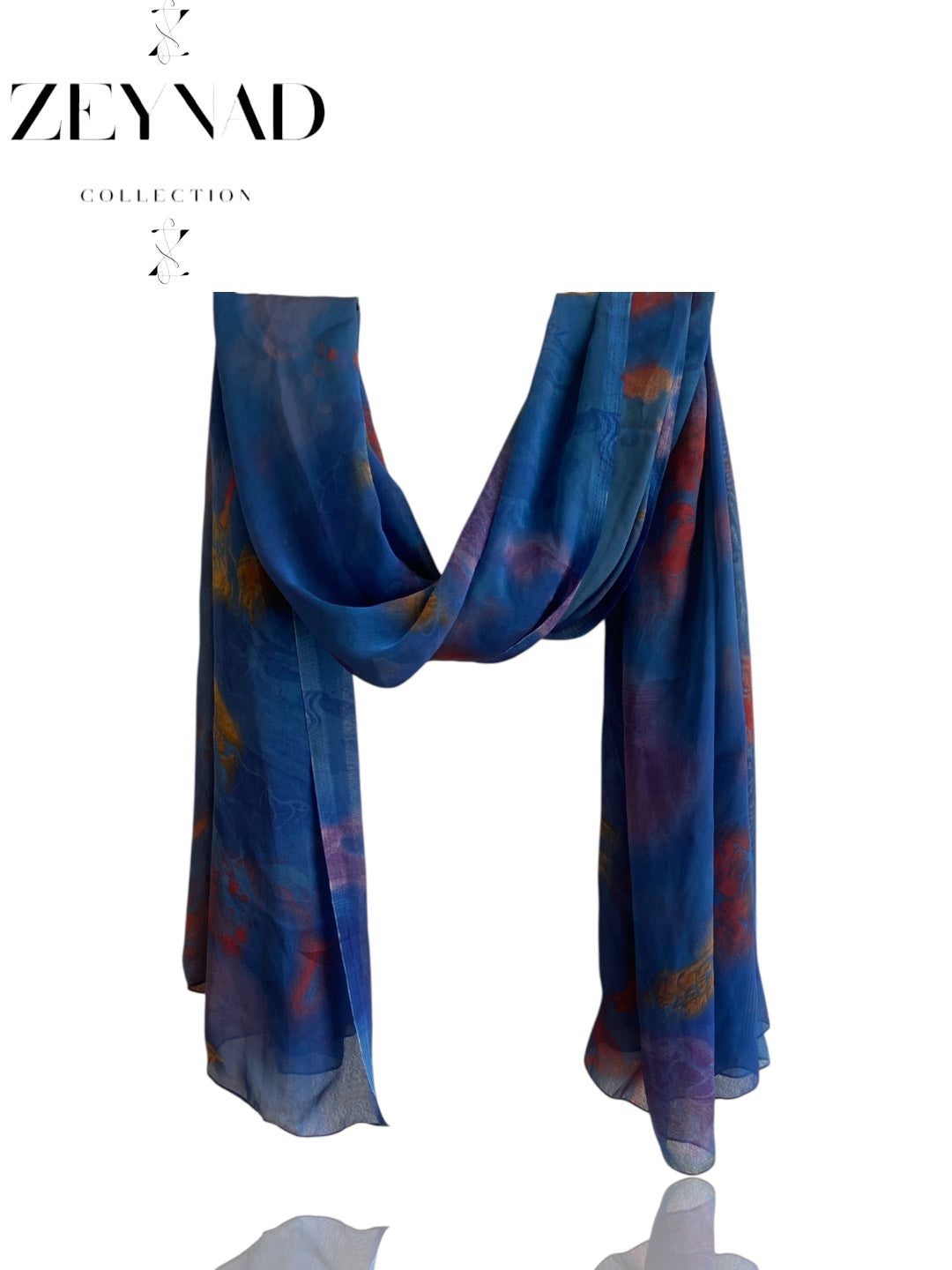 Enter a blend of true artistry and elegance with our stunning deep watercolor chiffon hijabs.