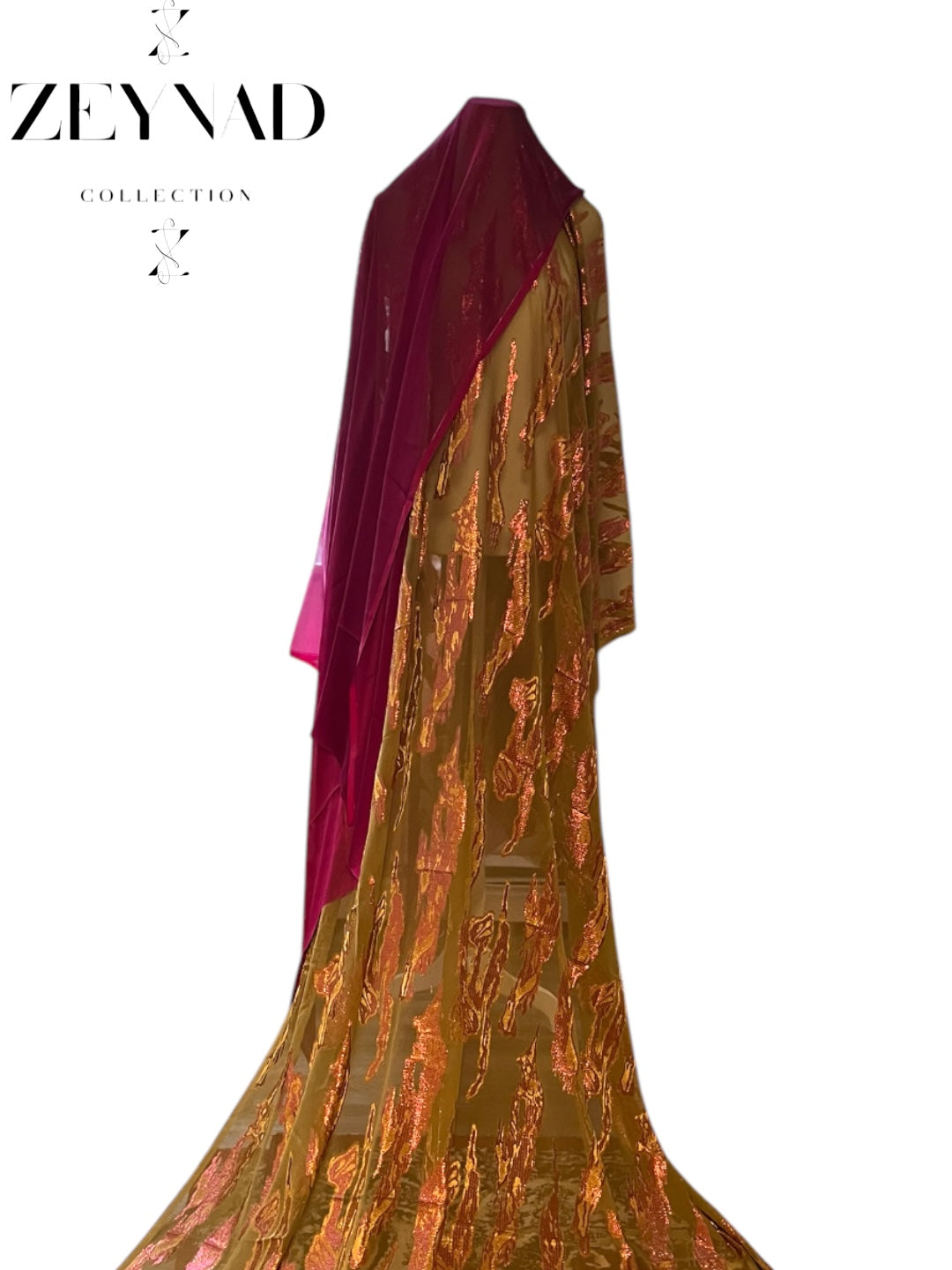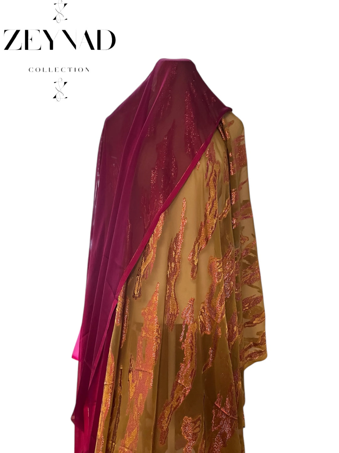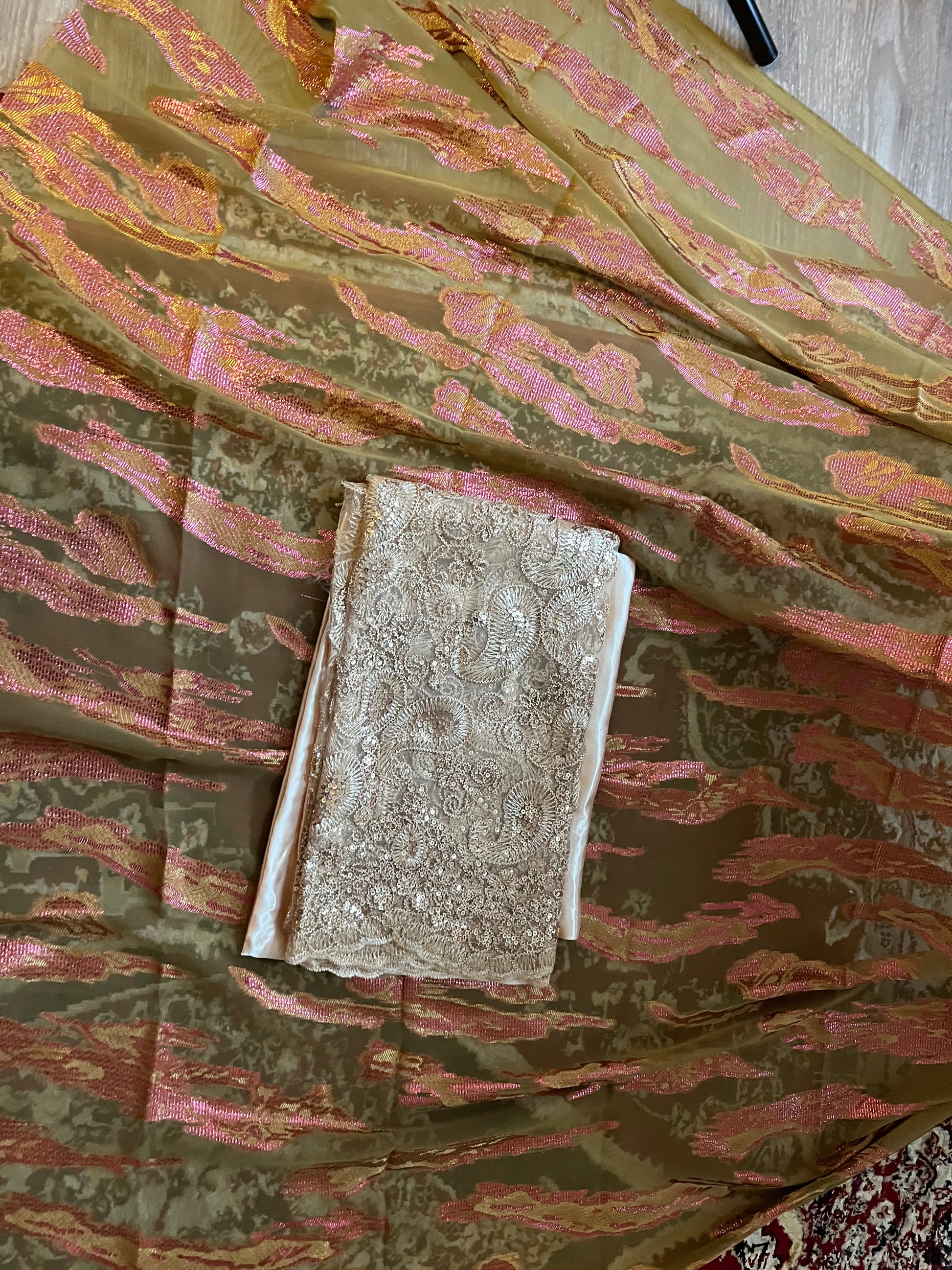 This Dirac set is paired with a gorgeous satin silk Gordgoro and a chiffon Gabasar to complete the look.