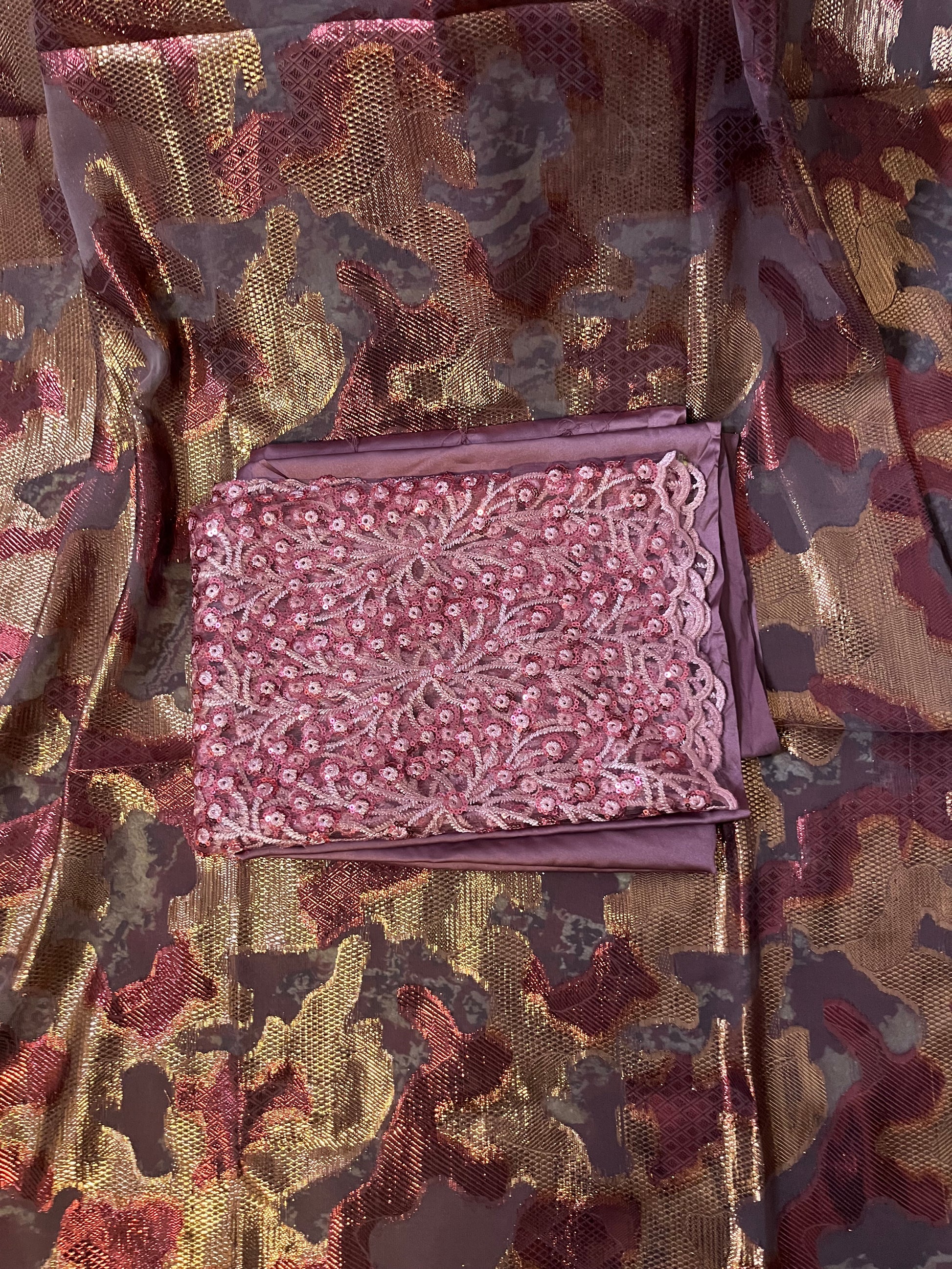 This Dirac set is paired with a gorgeous satin silk Gordgoro and a chiffon Gabasar to complete the look.