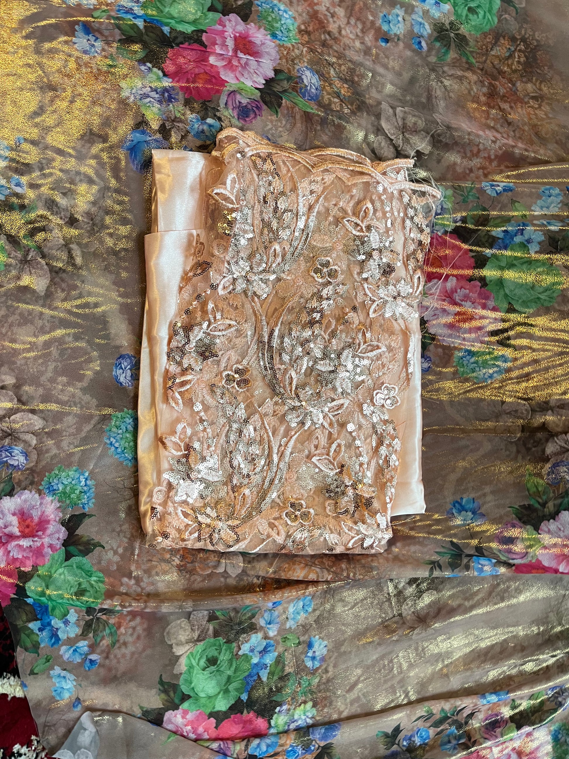 This Dirac set is paired with a gorgeous satin silk Gordgoro and a chiffon Gabasar to complete the look.