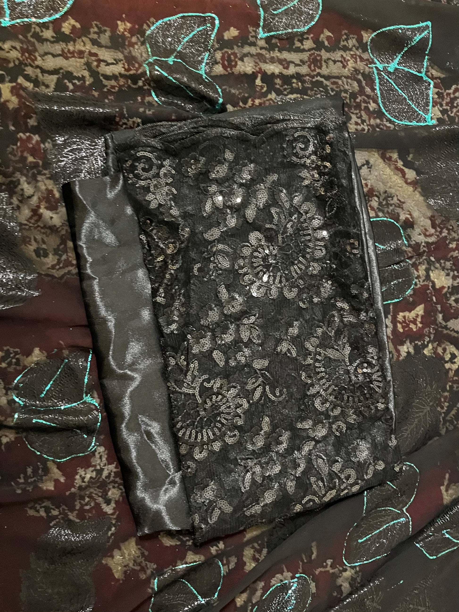 This Dirac set is paired with a gorgeous satin silk Gordgoro and a chiffon Gabasar to complete the look.