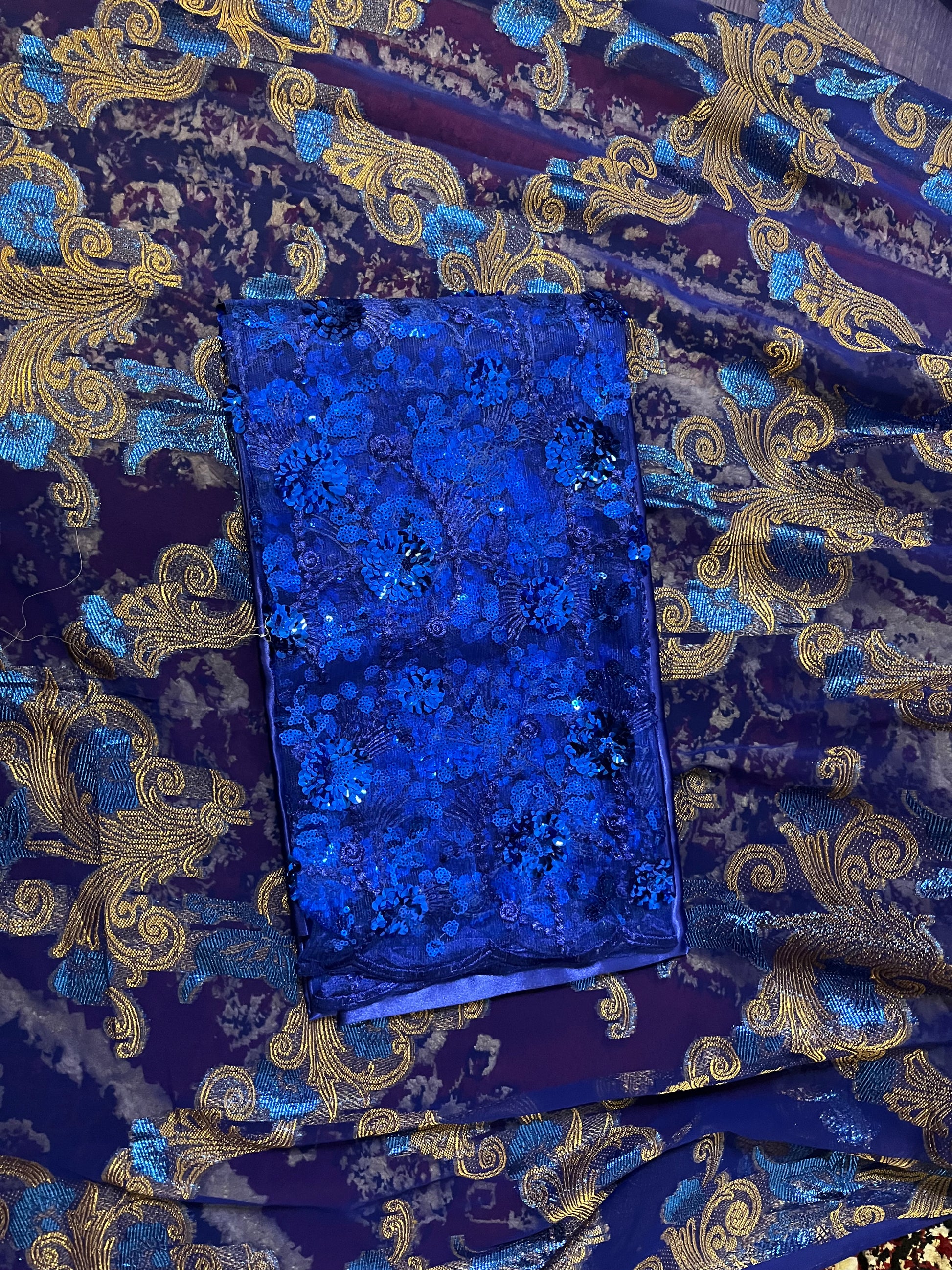 This Dirac set is paired with a gorgeous satin silk Gordgoro and a chiffon Gabasar to complete the look.