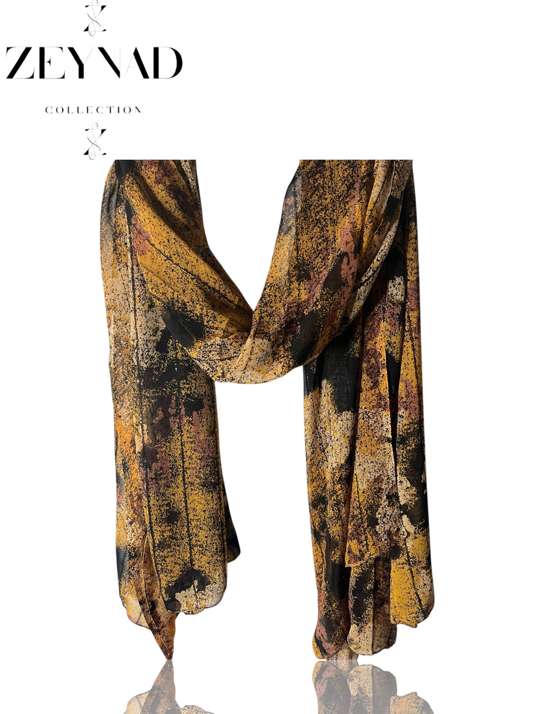 Enter a blend of true artistry and elegance with our stunning deep watercolor chiffon hijabs.