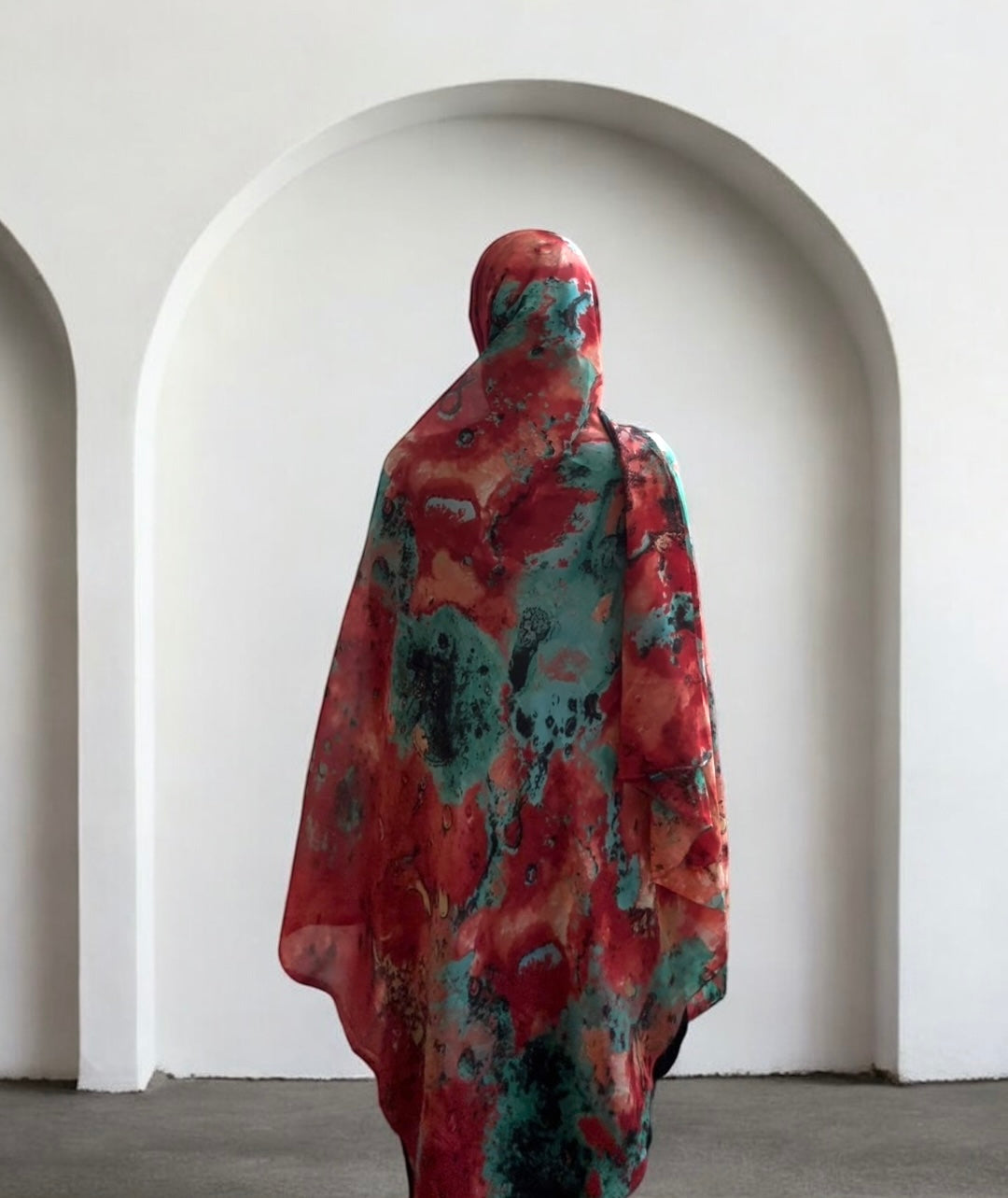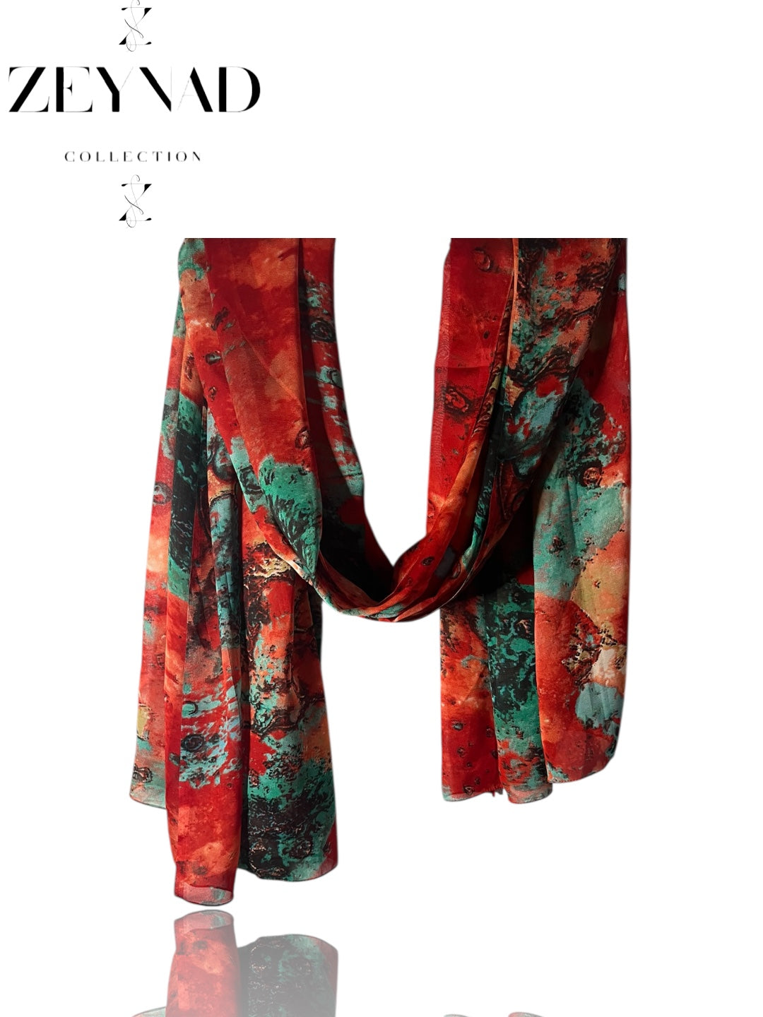 Enter a blend of true artistry and elegance with our stunning deep watercolor chiffon hijabs.
