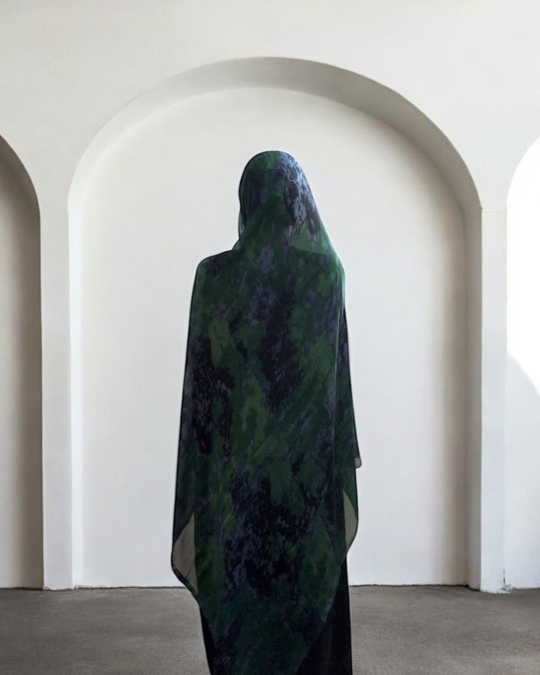 Enter a blend of true artistry and elegance with our stunning deep watercolor chiffon hijabs.