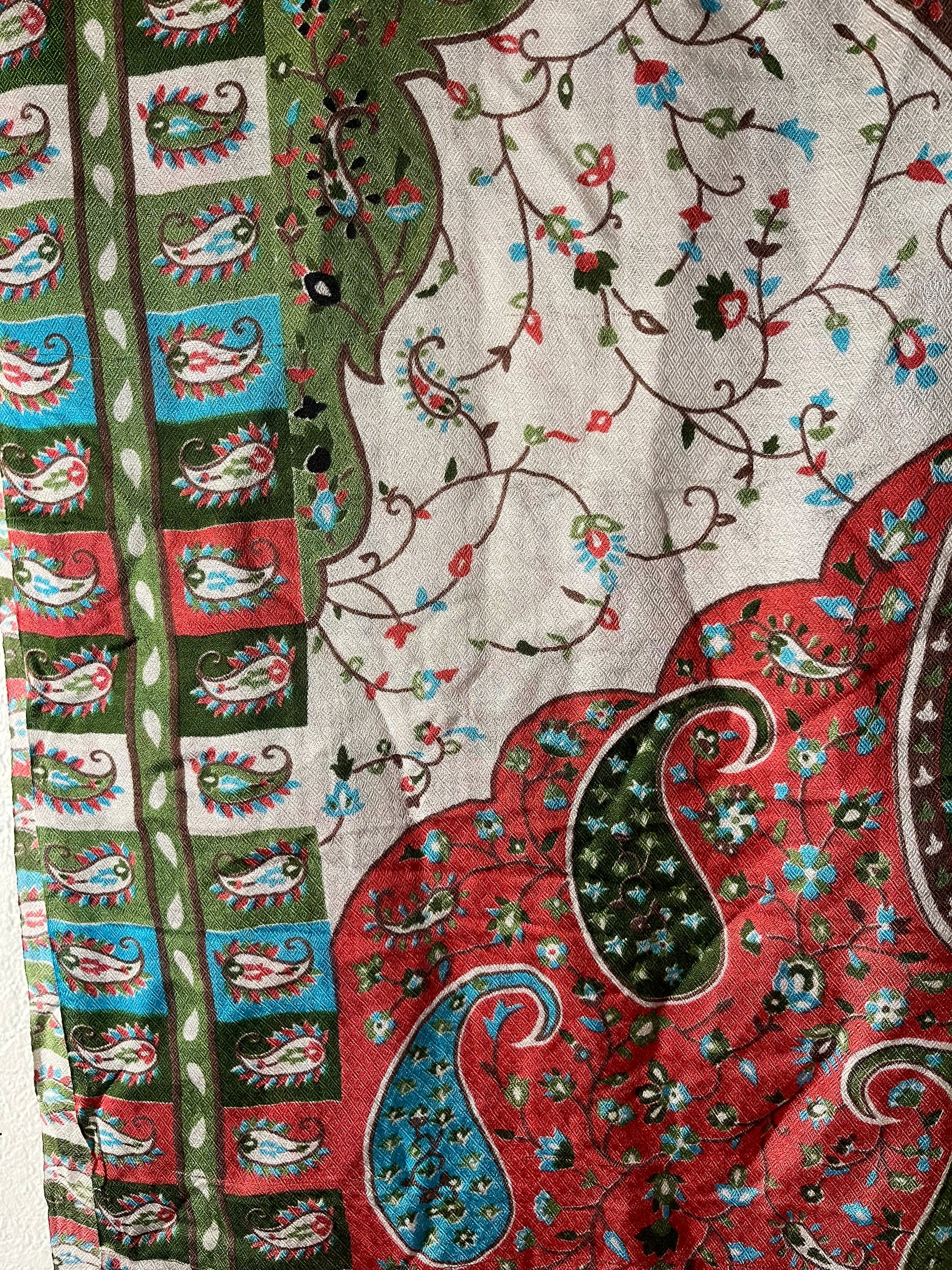 Light Green & Red Swirl End String Hijab
