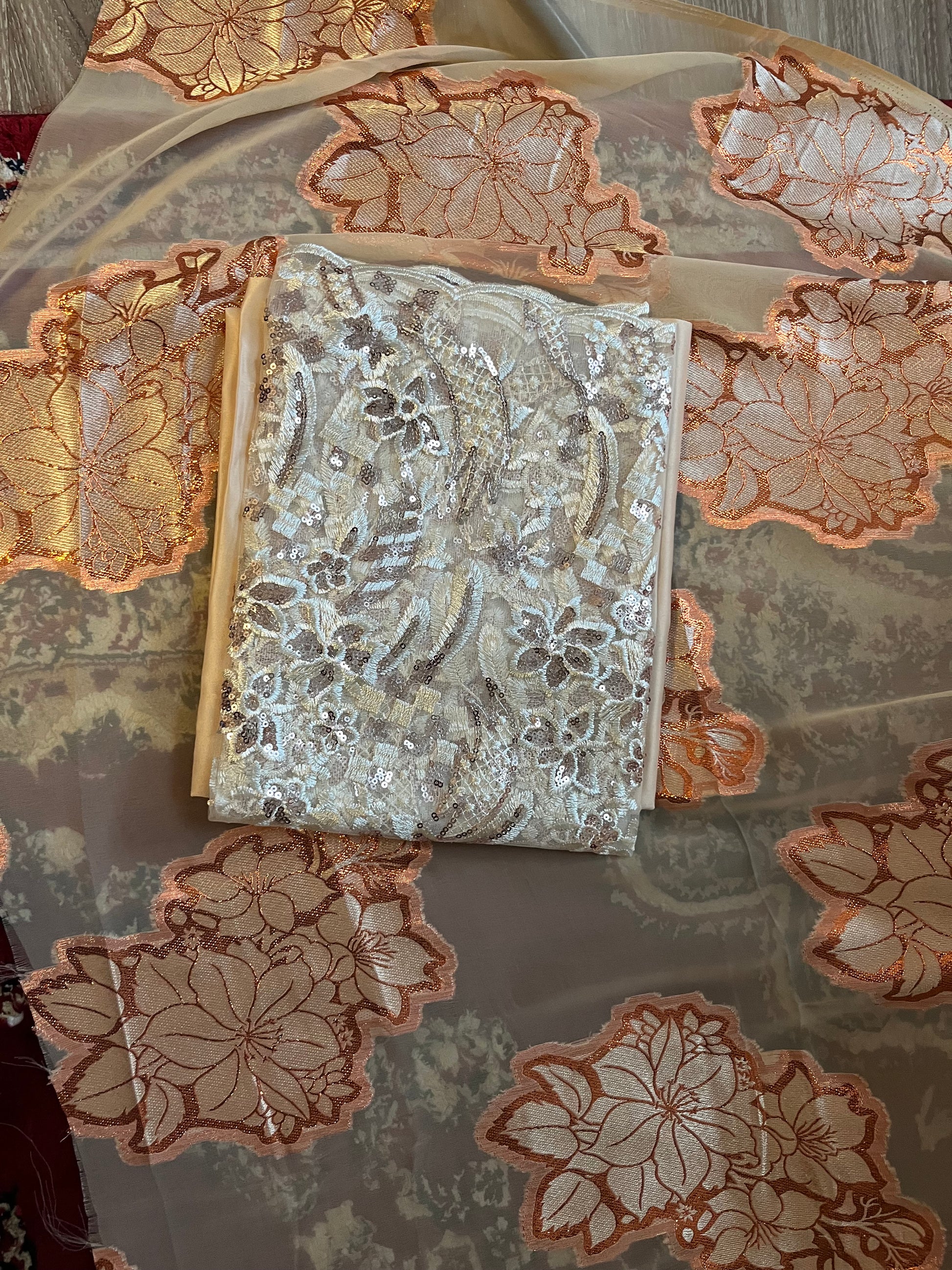 This Dirac set is paired with a gorgeous satin silk Gordgoro and a chiffon Gabasar to complete the look.