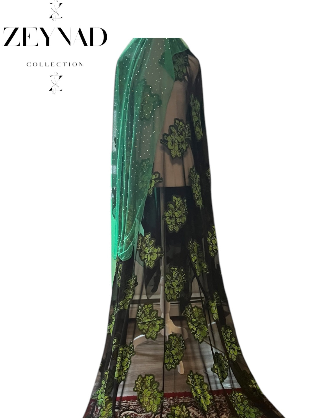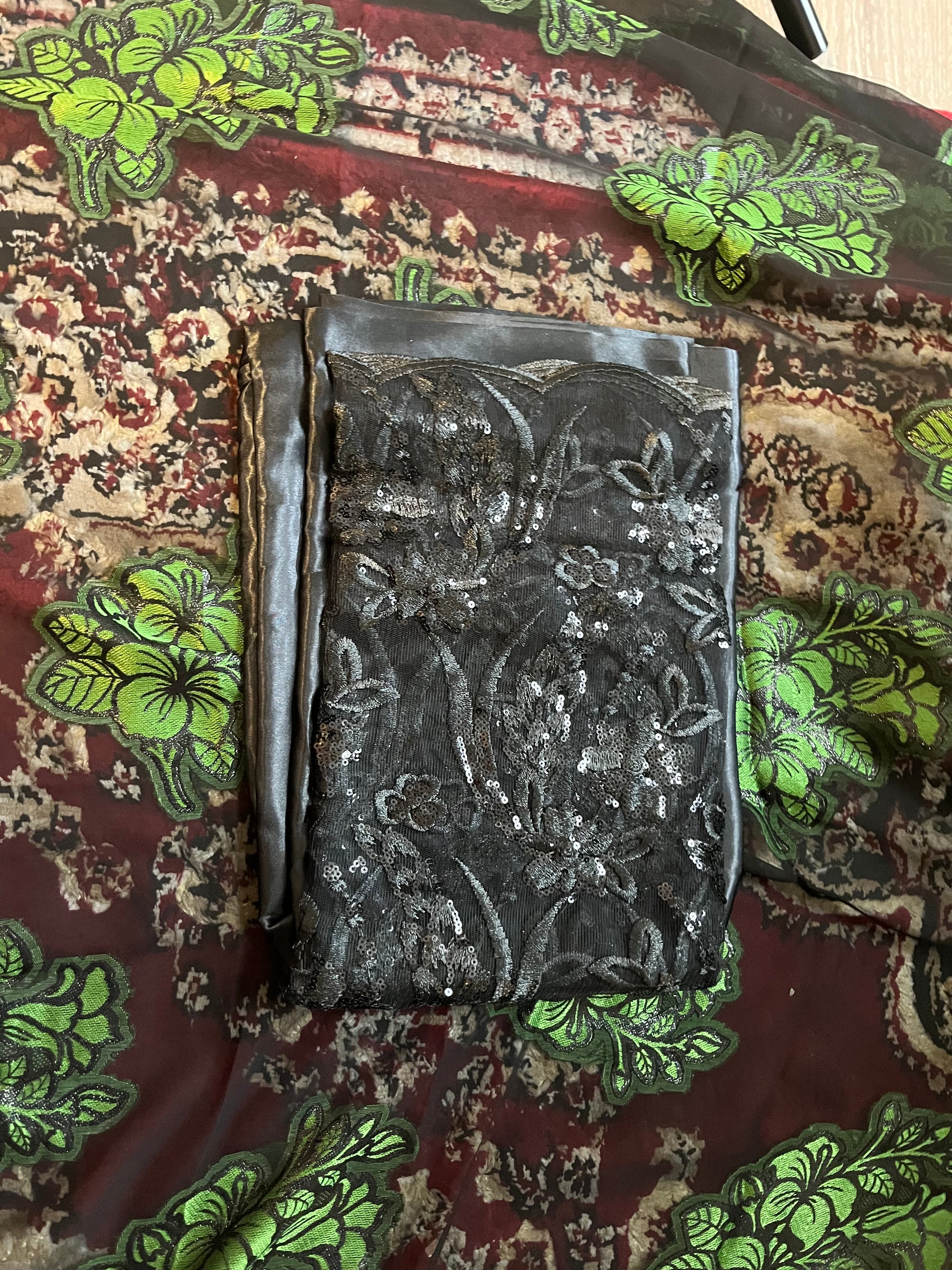 This Dirac set is paired with a gorgeous satin silk Gordgoro and a chiffon Gabasar to complete the look.