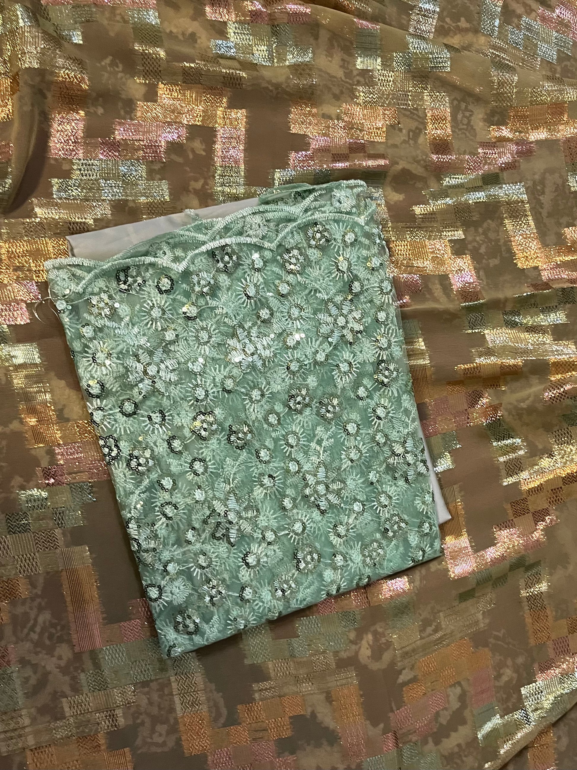 This Dirac set is paired with a gorgeous satin silk Gordgoro and a chiffon Gabasar to complete the look.