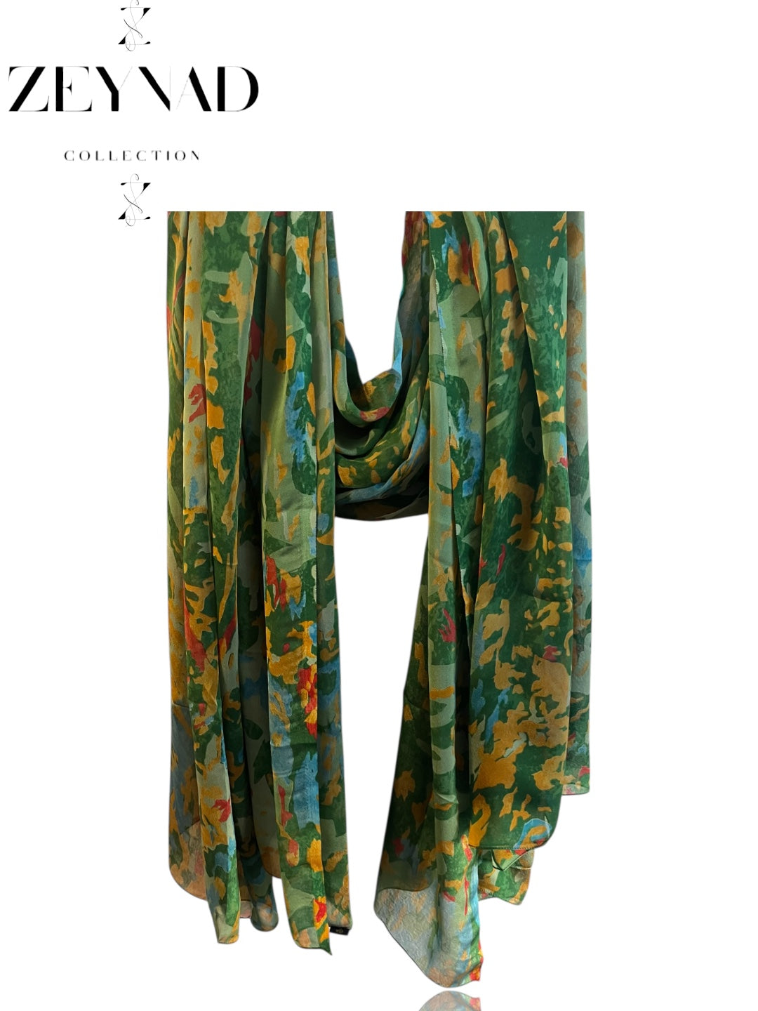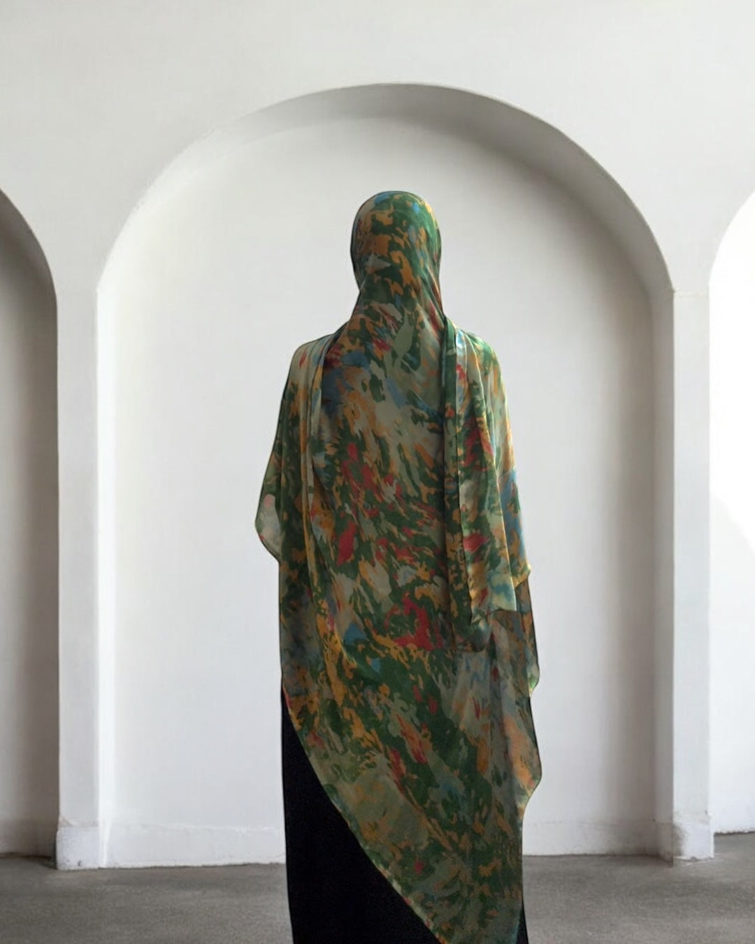 Enter a blend of true artistry and elegance with our stunning deep watercolor chiffon hijabs.