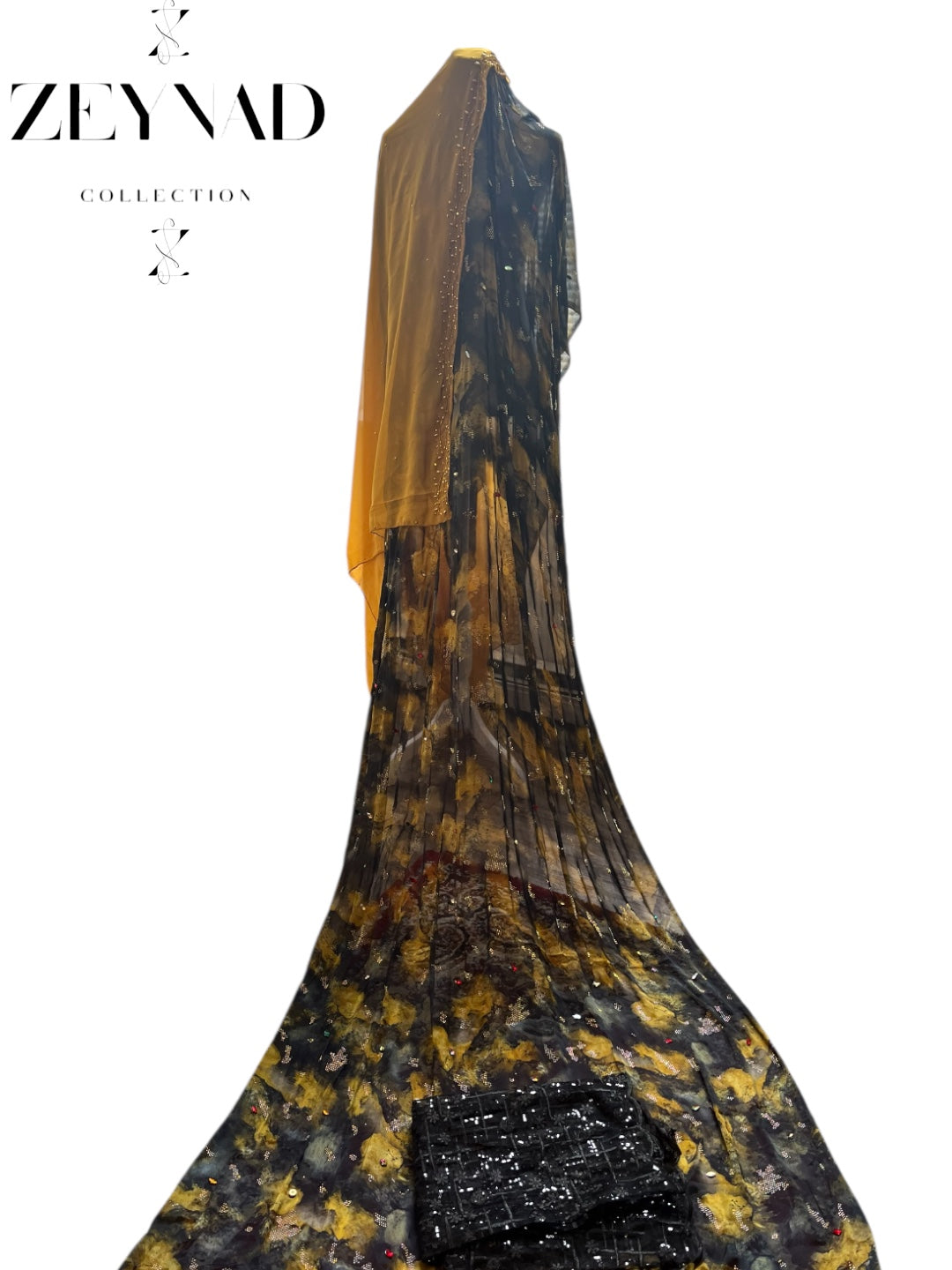 This Dirac set is paired with a gorgeous satin silk Gordgoro and a chiffon Gabasar to complete the look.