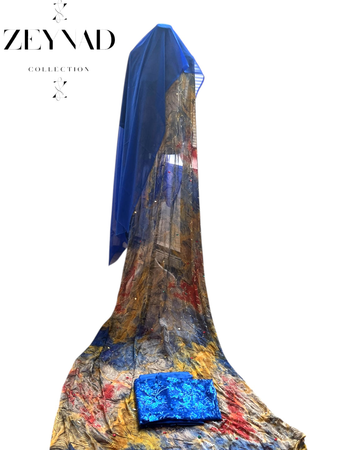 This Dirac set is paired with a gorgeous satin silk Gordgoro and a chiffon Gabasar to complete the look.