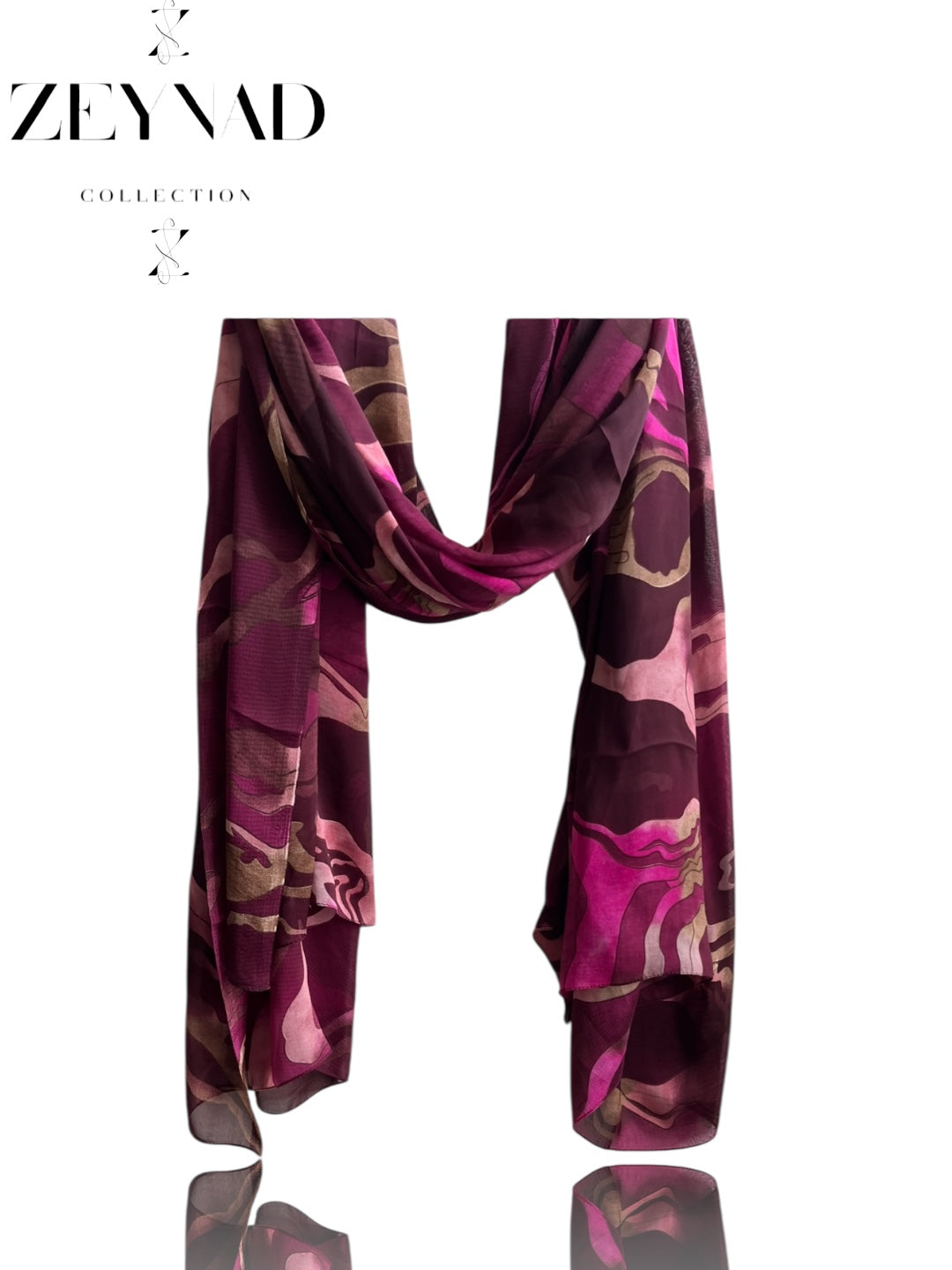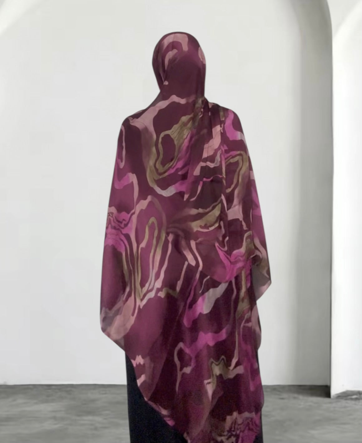 Enter a blend of true artistry and elegance with our stunning deep watercolor chiffon hijabs.