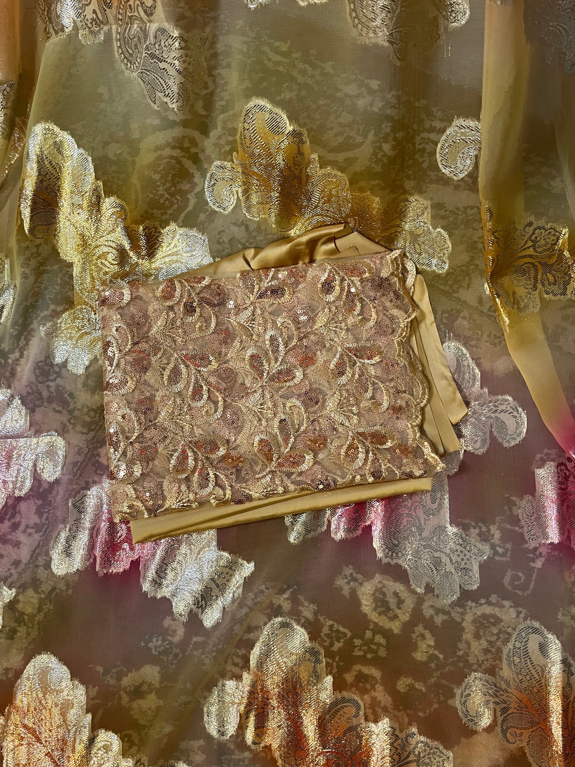 This Dirac set is paired with a gorgeous satin silk Gordgoro and a chiffon Gabasar to complete the look.