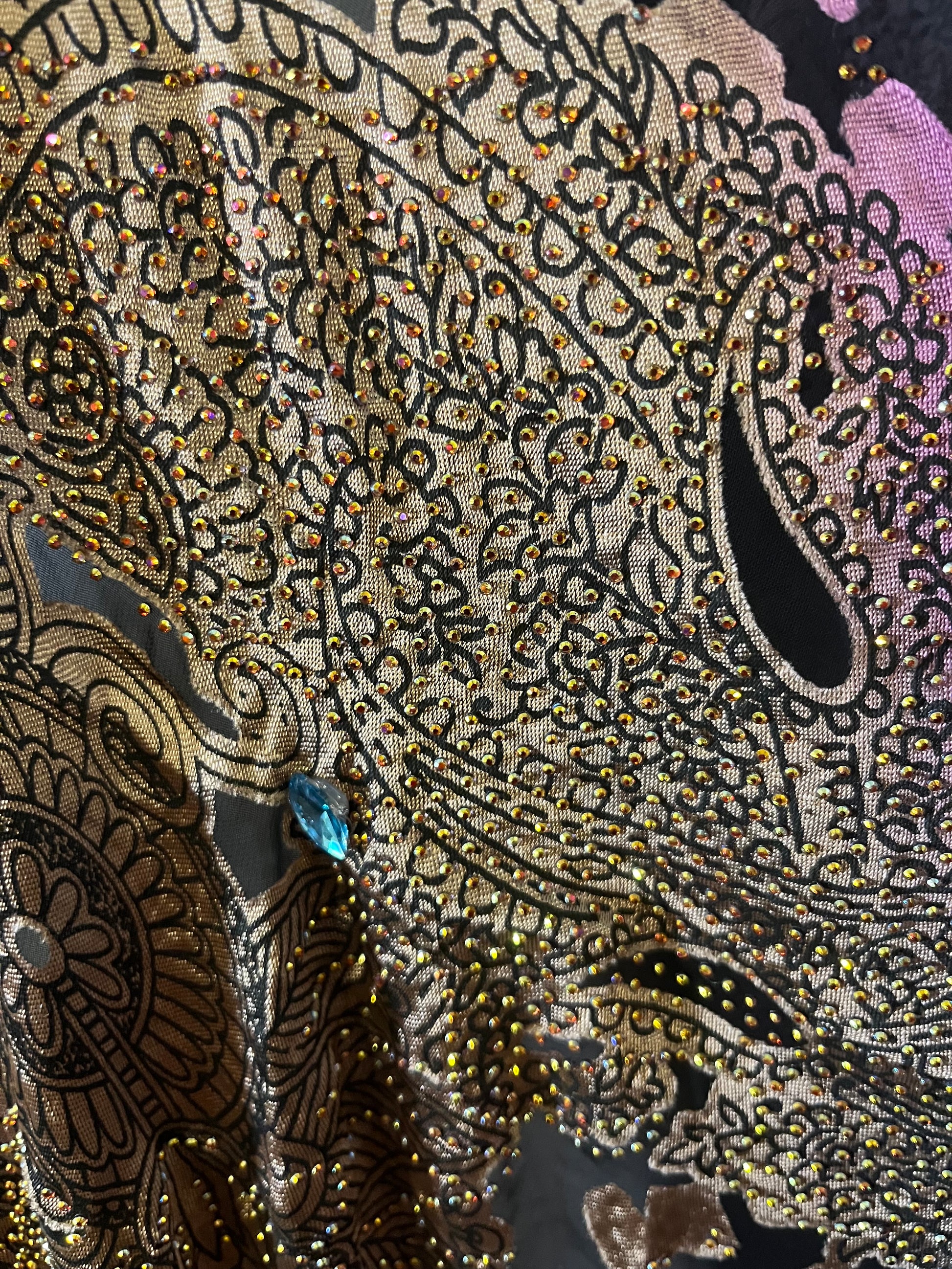 This Dirac set is paired with a gorgeous satin silk Gordgoro and a chiffon Gabasar to complete the look.
