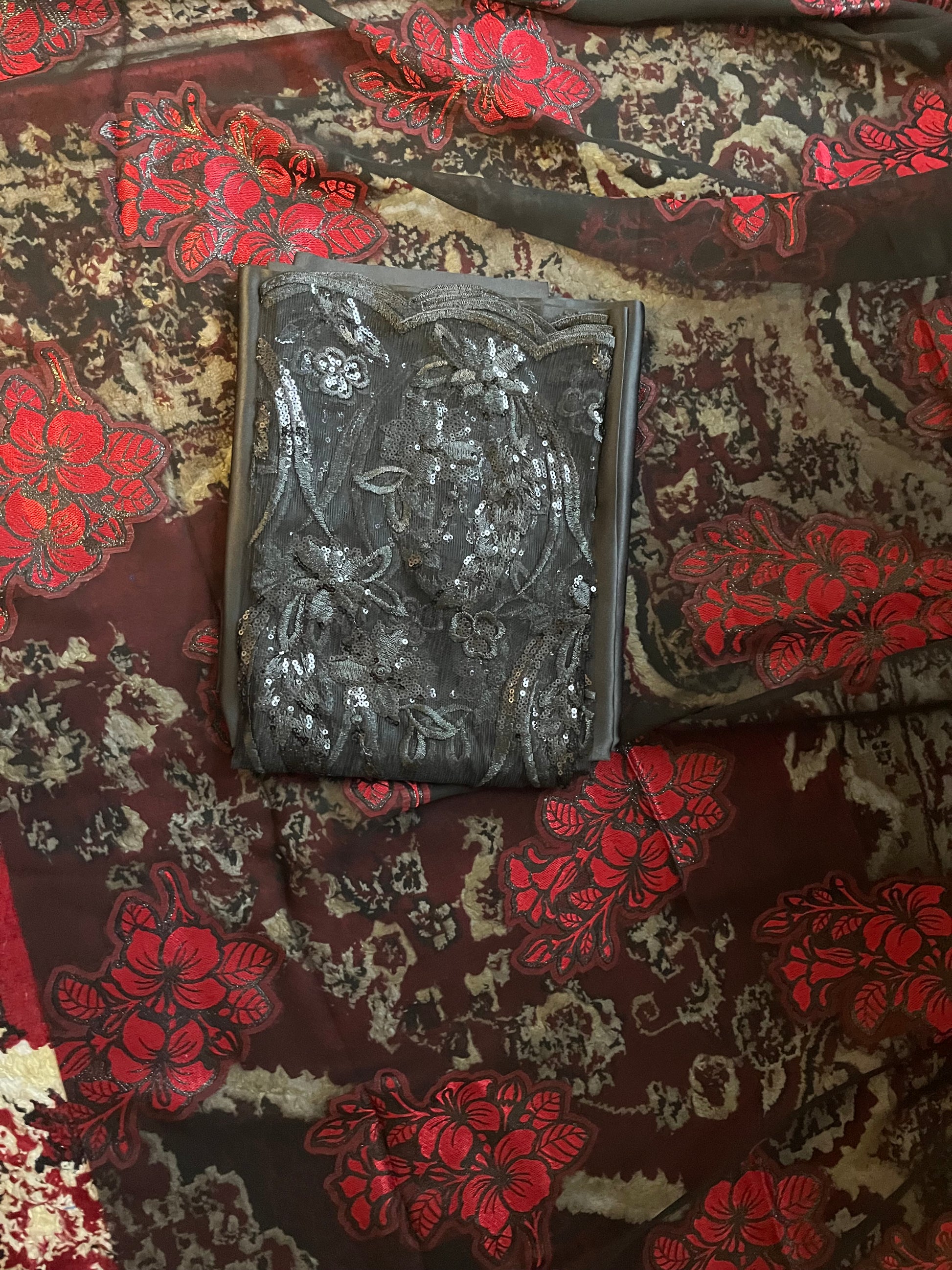 This Dirac set is paired with a gorgeous satin silk Gordgoro and a chiffon Gabasar to complete the look.