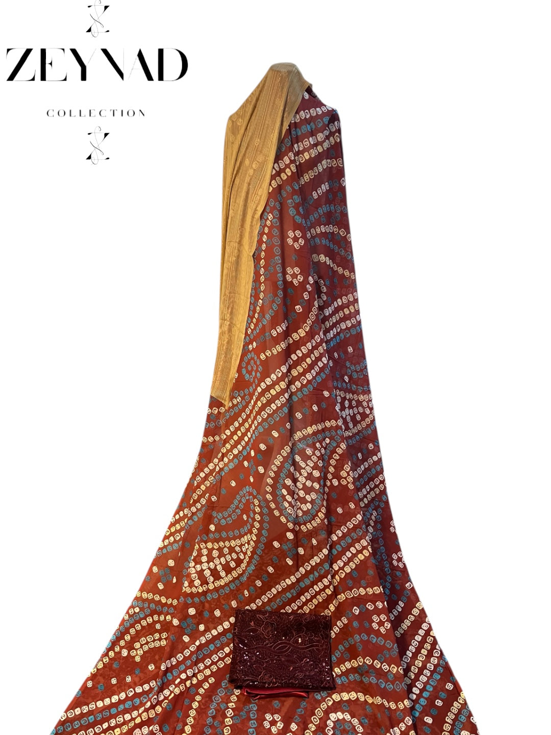 This Dirac set is paired with a gorgeous satin silk Gordgoro and a chiffon Gabasar to complete the look.