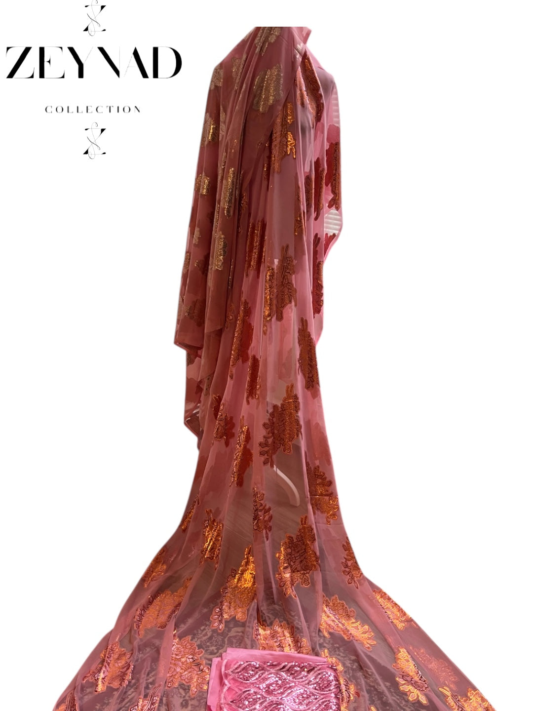 This Dirac set is paired with a gorgeous satin silk Gordgoro and a chiffon Gabasar to complete the look.