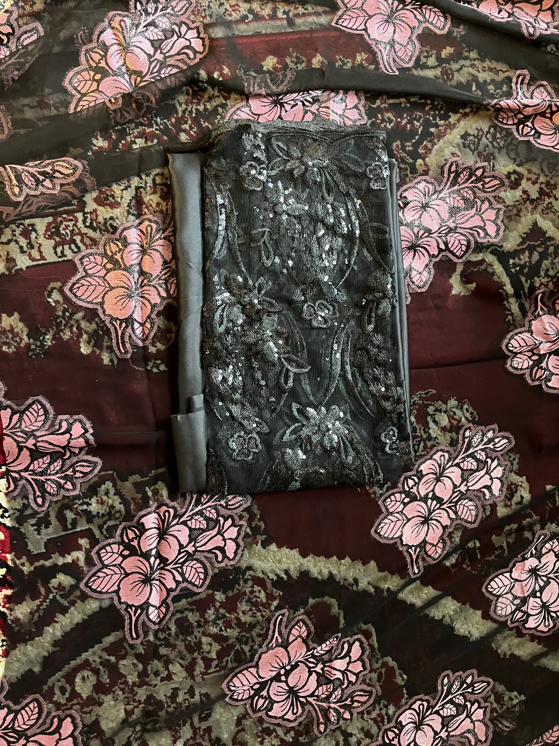 This Dirac set is paired with a gorgeous satin silk Gordgoro and a chiffon Gabasar to complete the look.