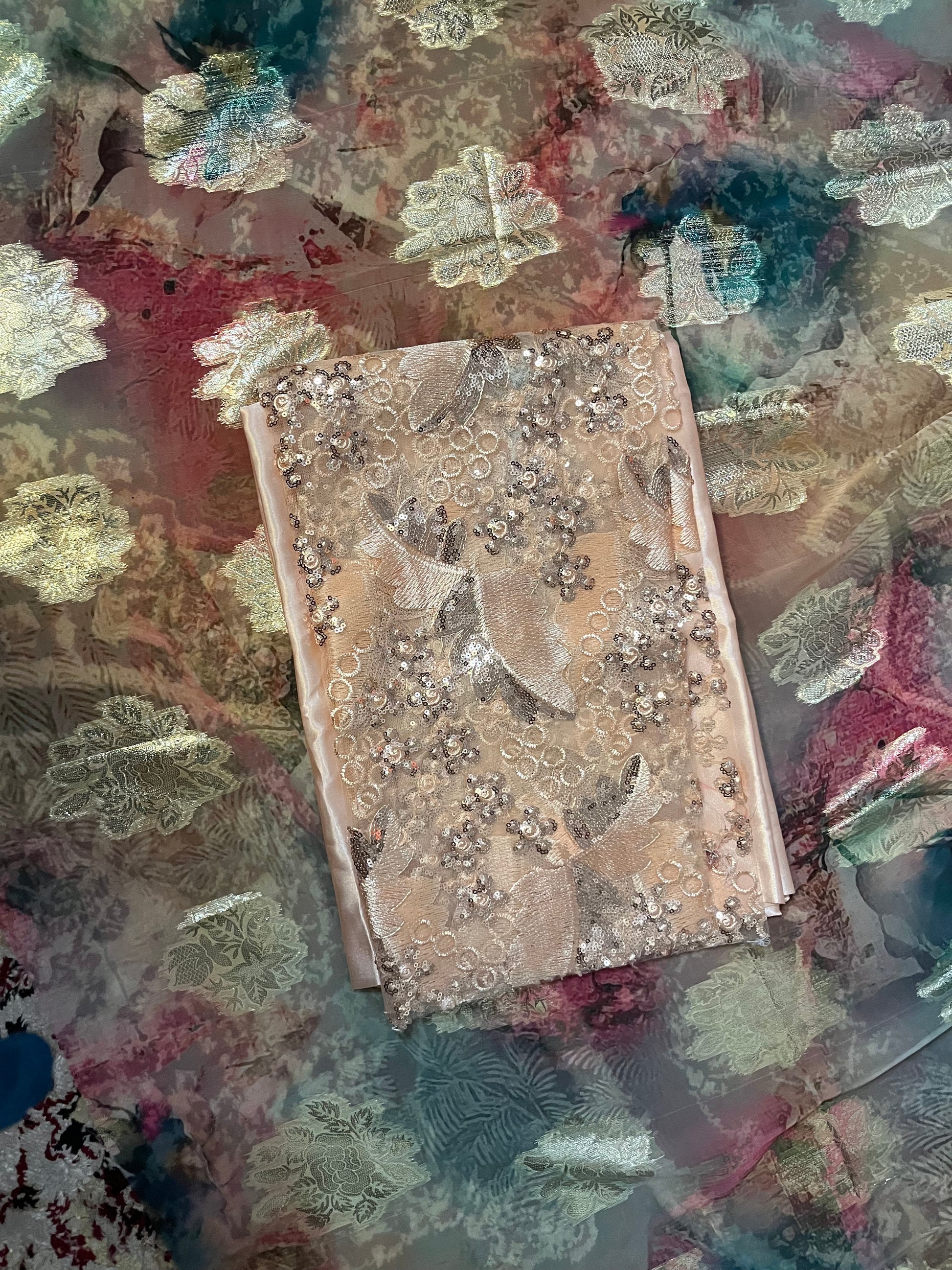 This Dirac set is paired with a gorgeous satin silk Gordgoro and a chiffon Gabasar to complete the look.