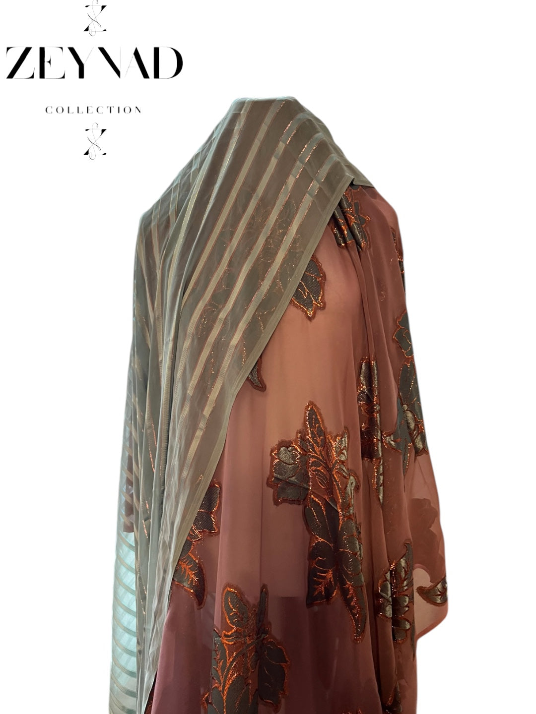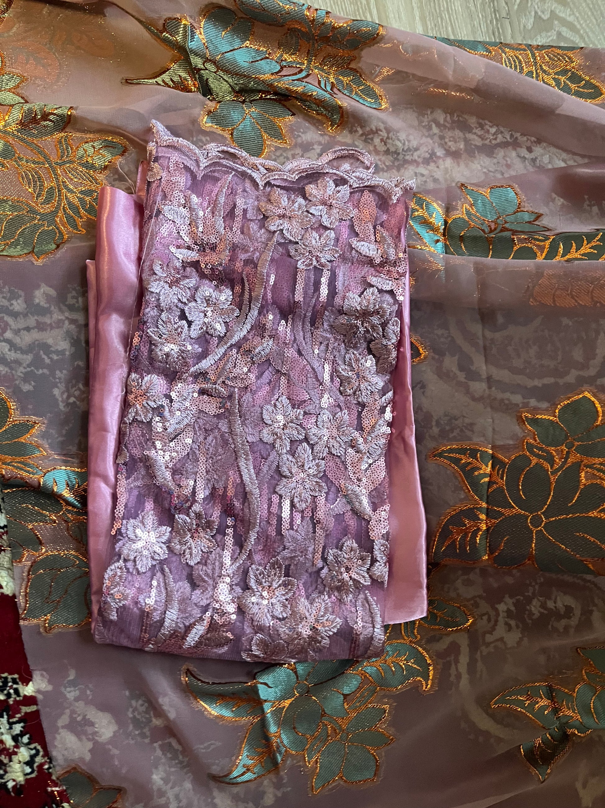 This Dirac set is paired with a gorgeous satin silk Gordgoro and a chiffon Gabasar to complete the look.