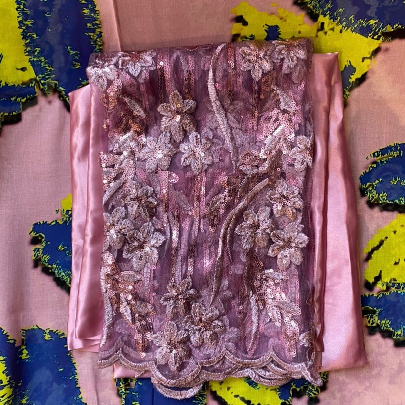 This Dirac set is paired with a gorgeous satin silk Gordgoro and a chiffon Gabasar to complete the look.