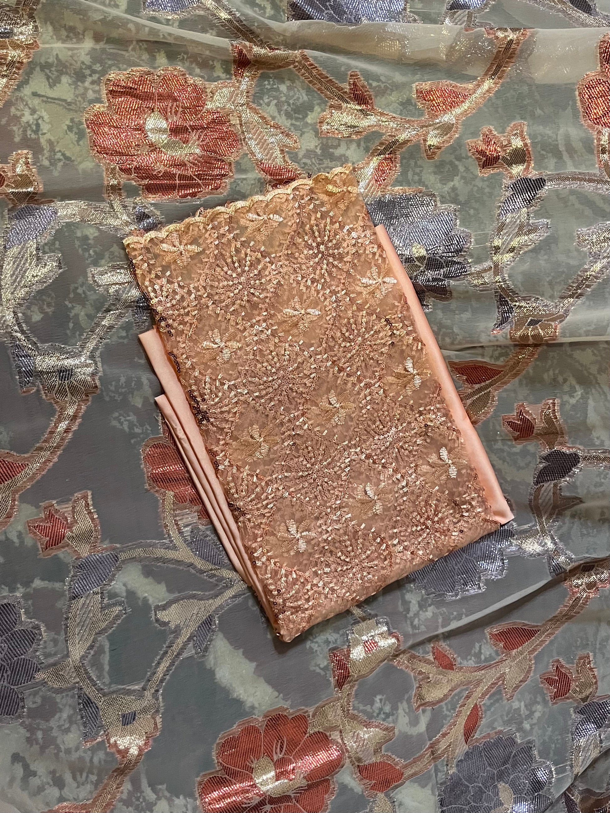 This Dirac set is paired with a gorgeous satin silk Gordgoro and a chiffon Gabasar to complete the look.