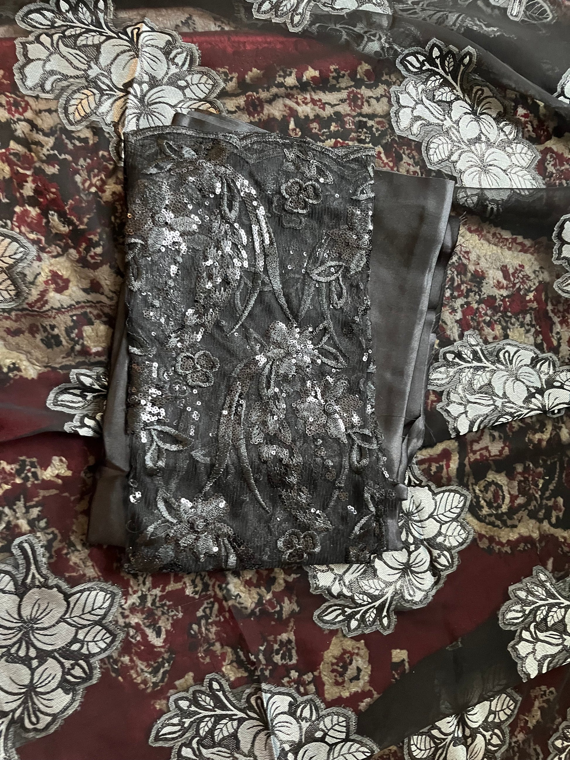 This Dirac set is paired with a gorgeous satin silk Gordgoro and a chiffon Gabasar to complete the look.