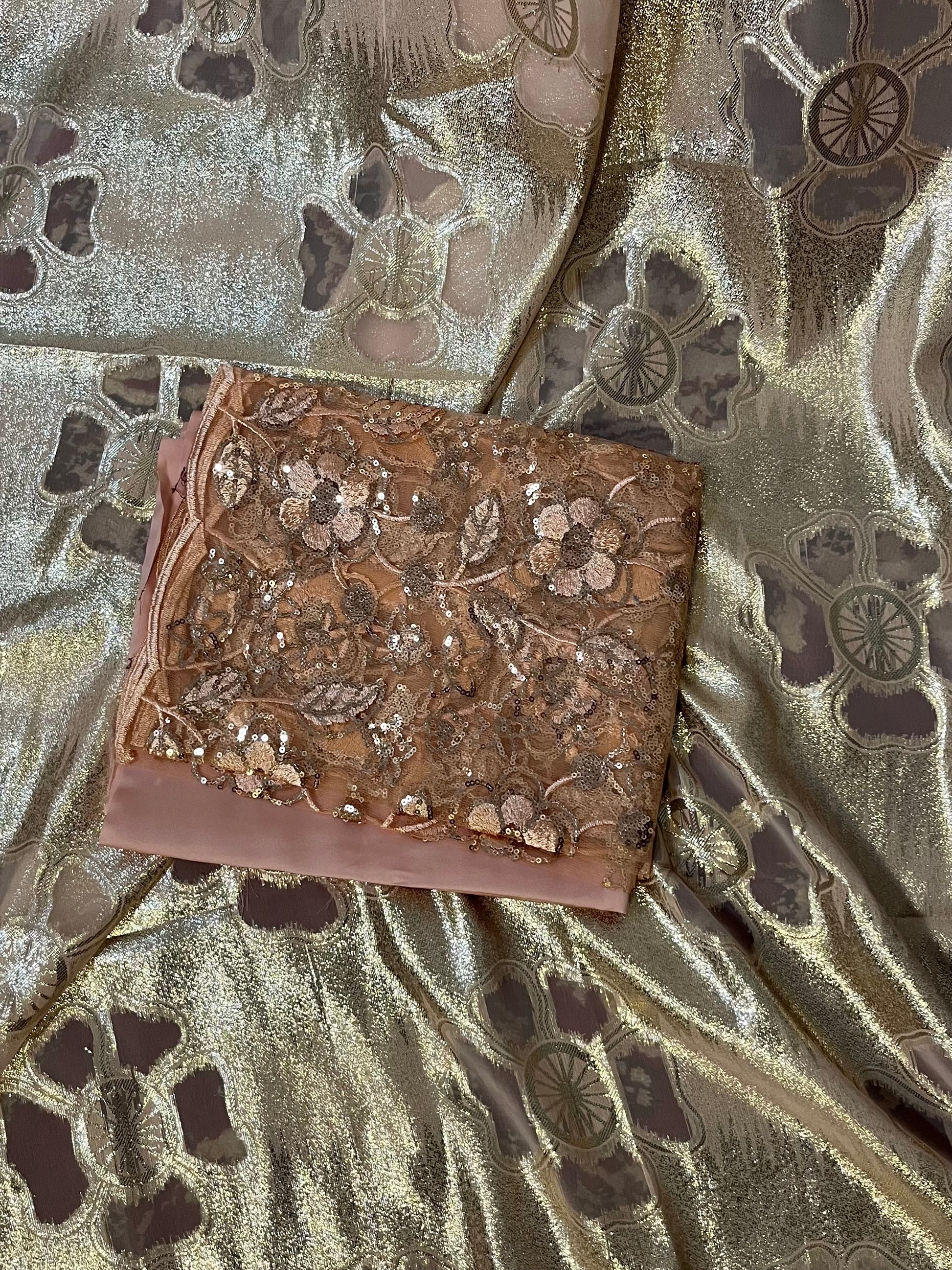 This Dirac set is paired with a gorgeous satin silk Gordgoro and a chiffon Gabasar to complete the look.