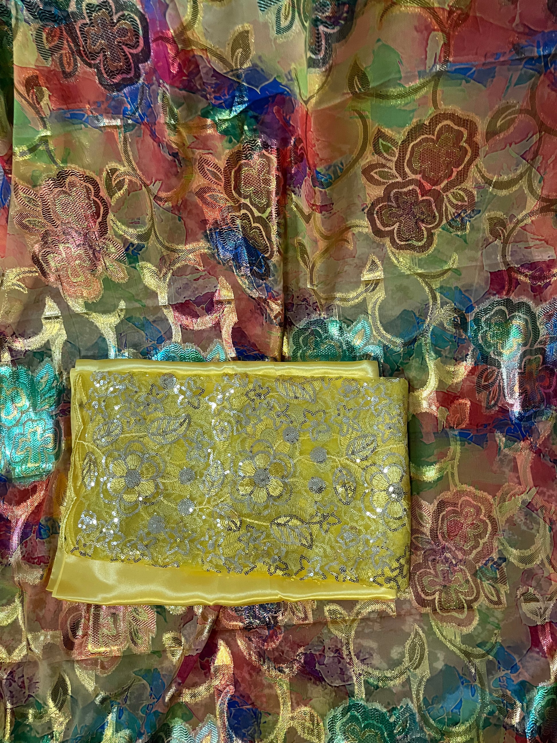 This Dirac set is paired with a gorgeous satin silk Gordgoro and a chiffon Gabasar to complete the look.